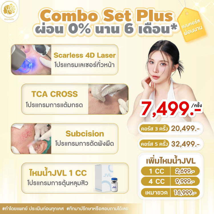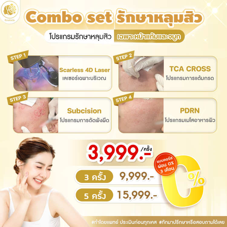 Combo Set รักษาหลุมสิว โปรแกรมตอบโจทย์ปัญหาหลุมสิว รักษาหลุมสิวทุกชนิด ผิวหน้าเรียบเนียน ที่โรสเบลล์คลินิกอโศก-ดินแดง และ พหลโยธิน