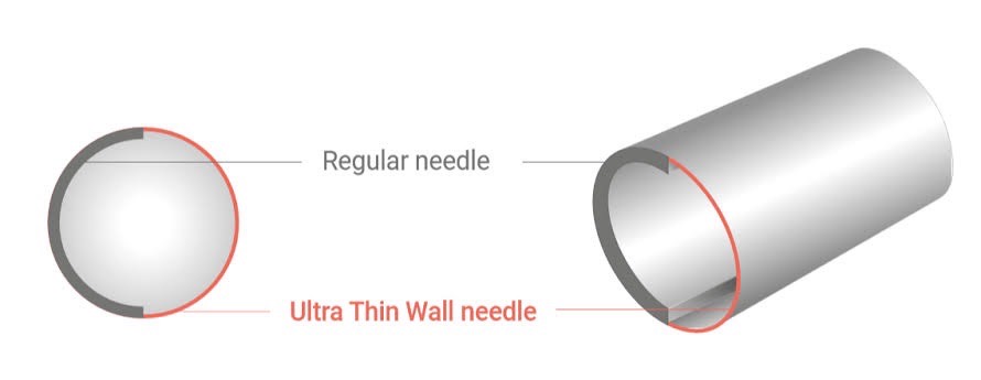ฟิลเลอร์เกาหลีกล่องทอง ประกอบด้วย 0.3% Lidocaine เพื่อลดอาการเจ็บปวดของคนไข้ระหว่างการทำหัตถการ ด้วยเข็มชนิดผนังบางพิเศษ (Ultra thin Wall Needle) ที่พัฒนามาอย่างเหมาะสมสำหรับฟิลเลอร์เกาหลีกล่องทอง เพื่อลดอาการเจ็บ และบวม หลังจากการทำหัตถการ
