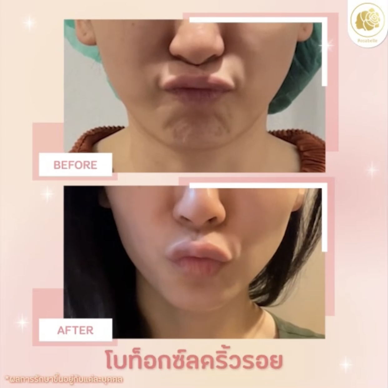 การฉีดโบท็อกซ์ลดรอยย่นรอยบุ๋มที่คาง จะช่วยให้เวลาแสดงสีหน้า กล้ามเนื้อบริเวณคางจะไม่ยึดตัวเข้ามาเยอะมาก จนเห็นเป็นรอยบุ๋ม หลังทำจะช่วยเพิ่มความมั่นใจเวลาแสดงสีหน้าได้