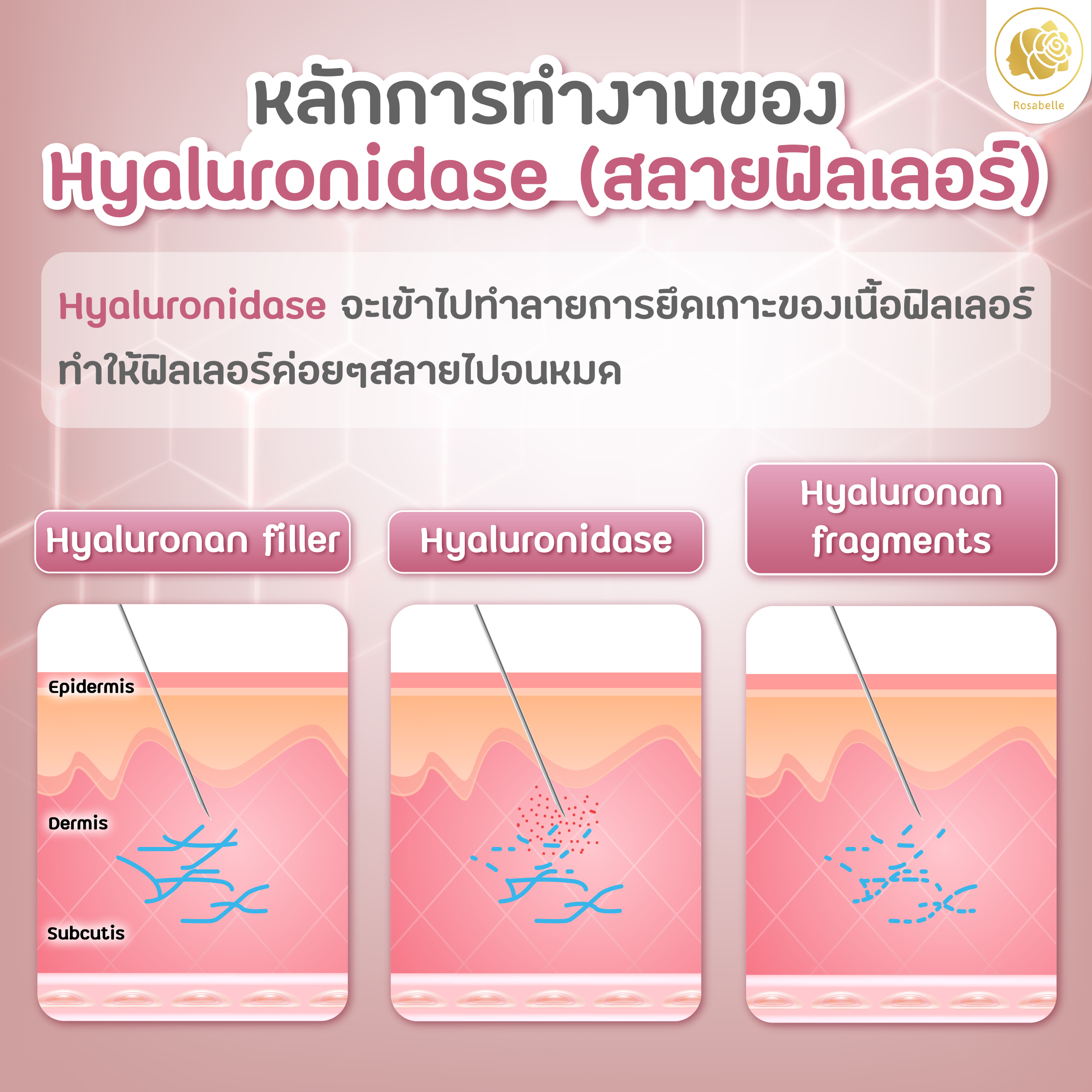 ตัวยา Hyaluronidase นี้มีคุณสมบัติในการสลายฟิลเลอร์ทุกยี่ห้อ ที่เป็นฟิลเลอร์ชนิด Hyaluronic acid (HA Fillers) เท่านั้น ไม่มีคุณสมบัติในการสลายฟิลเลอร์จากสารอื่นๆ