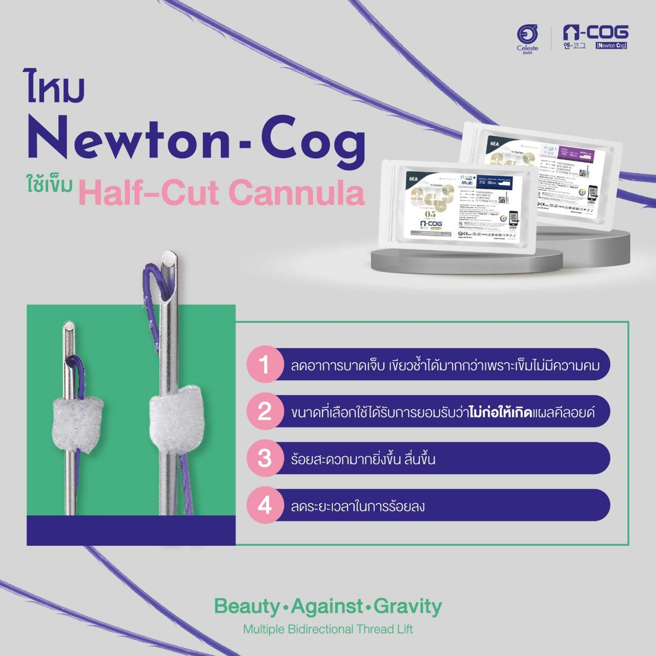 ข้อดีของไหม Newton-Cog ใช้เข็ม Half-Cut Cannula