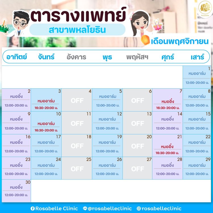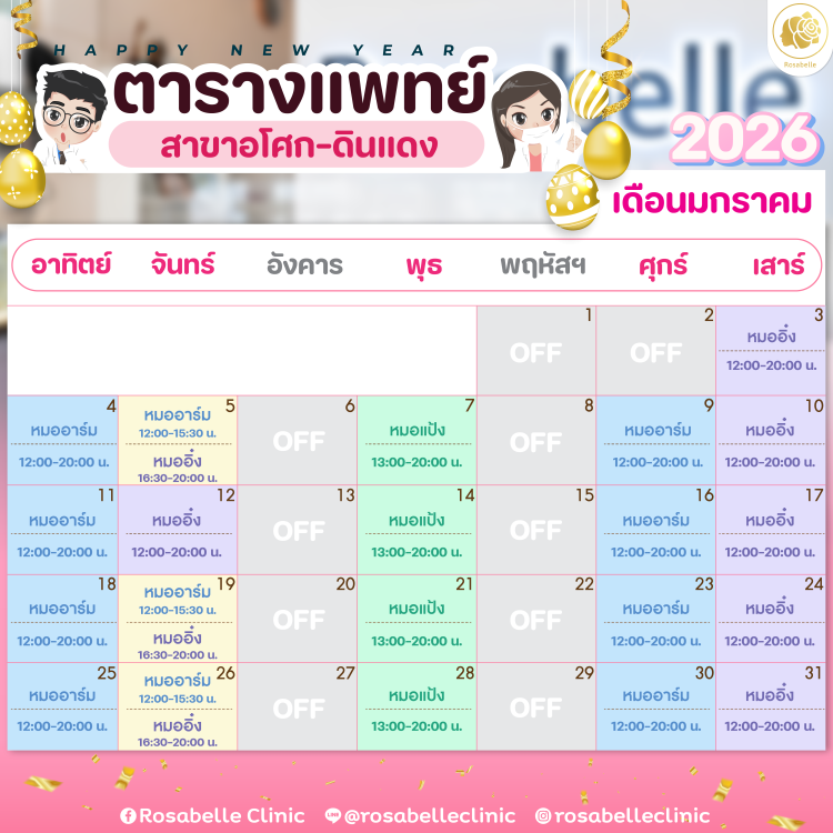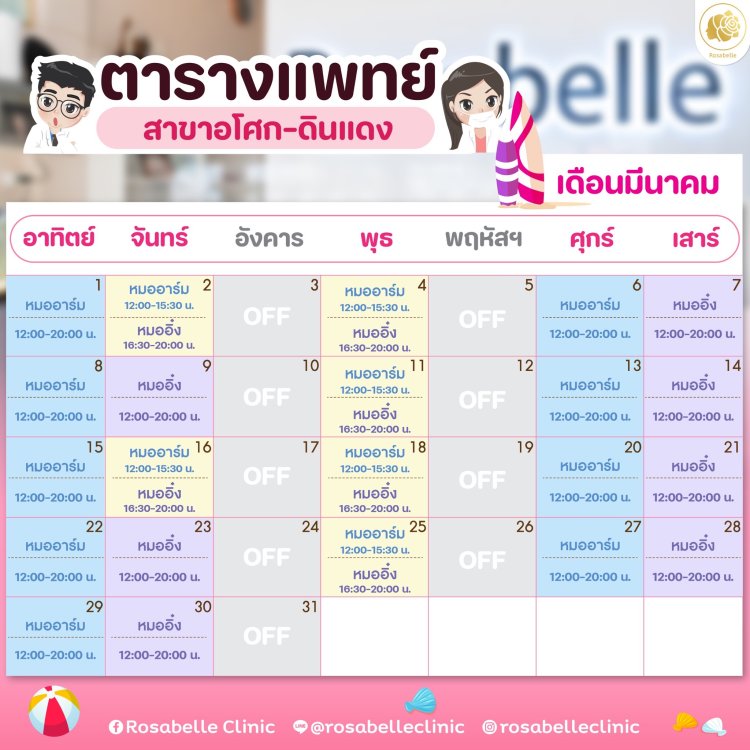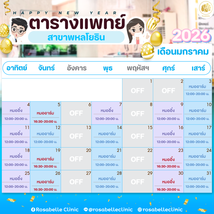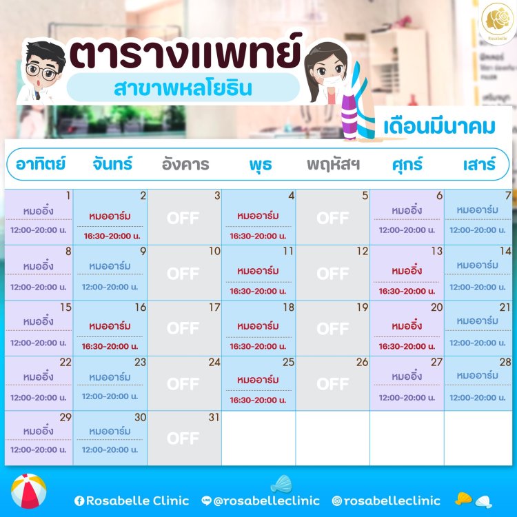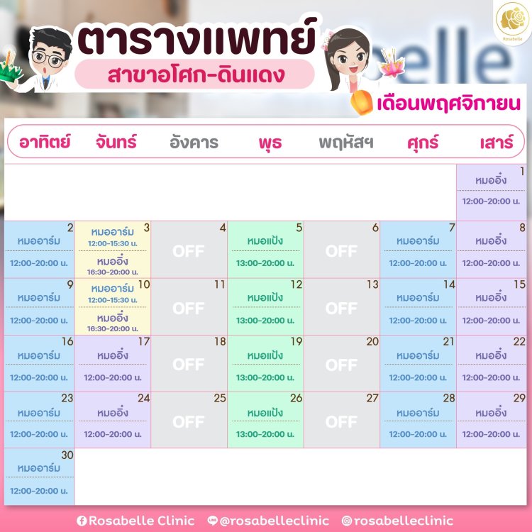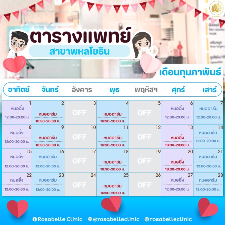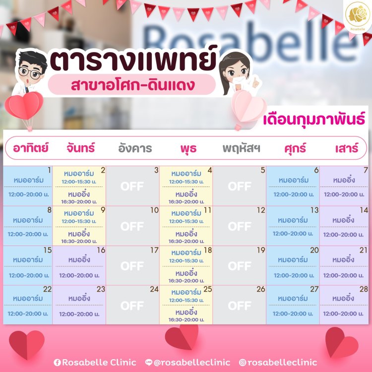 ตารางเข้าคลินิกของคุณหมอที่โรสเบลล์คลินิกทั้ง 2 สาขา